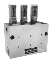該型分配器適用于公稱壓力為40MPa的雙線式干油集中潤滑系統(tǒng)中,在兩條供油主管交替的供油壓力作用下,直接由供油壓力控制活塞動作給油,完成向潤滑點定量分配潤滑脂的功能。